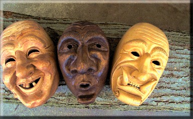 Wer seine Energie, seine Gedanken und Vorstellungen beim Schnitzen umsetzen und ins Schnitzwerk einfließen lassen will, braucht Zeit. Ein Gut, das heute leider auch beim Schnitzen immer seltener ist. Große Fräsen werden oft, auch beim Maskenschnitzen, eingesetzt. Sogenannte Rohlinge- nichts anderes als industrielle Massenware - werden dann vom Schnitzer noch "nachbearbeitet", damit sie dann als handgefertigt verkauft werden können. Individualität, künstlerischer Ausdruck und die Freude und Energie des Erschaffers einer Maske haften solchen Kopie nicht an- sie alle haben das gleiche Lächeln, den gleichen Ausdruck, sind eben Kopien. Meine Schnitzereien sind dagegen wirklich von Hand gefertigt. Viele Stunden intensiven Schnitzens, all meine Freude und Begeisterung, fließen in sie ein. Mit Ausnahme der Kettensäge bei ganz großen Schnitzereien verwende ich sonst nur die Bandsäge zum groben Aussägen des Umrisses und einen Forstnerbohrer für das grobe Aushöhlen der Masken. Beides beeinflusst die Kreativität nicht und könnte- allerdings dann nur aus vollkommen puristischer Grundhaltung heraus- ohne weiteres auch mit Beil und Aushöhleisen vorgenommen werden.